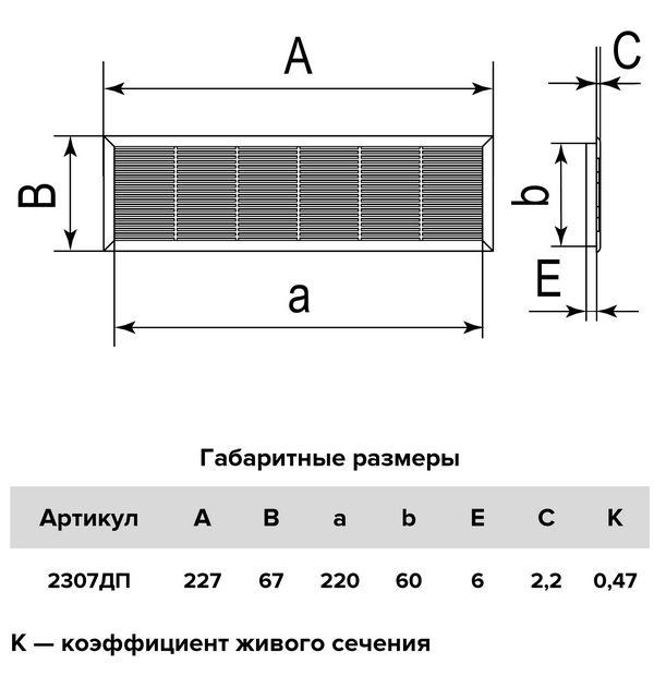 Дверная решетка прямоугольная пластиковая Era 2307ДП