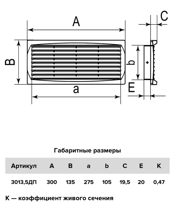 Дверная решетка прямоугольная пластиковая Era 3013,5ДП