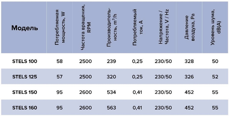 В вентиляторе установлен однофазный двигатель на шарикоподшипниках с внешним ротором, который оснащен рабочим колесом с загнутыми назад лопатками. Мотор имеет тепловую защиту с автоматическим перезапуском.