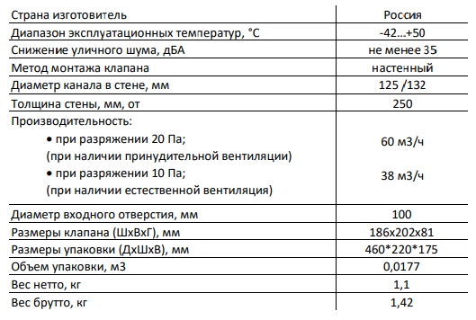 - Пассивный приток до 60 м3/час при разрежении в 20 Па
