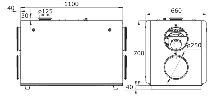 Диаметр подключения, мм 250