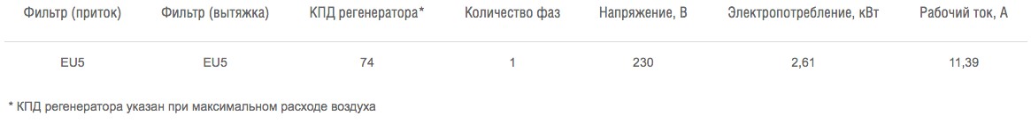• роторный теплообменник с КПД до 77 % при максимальном расходе воздуха