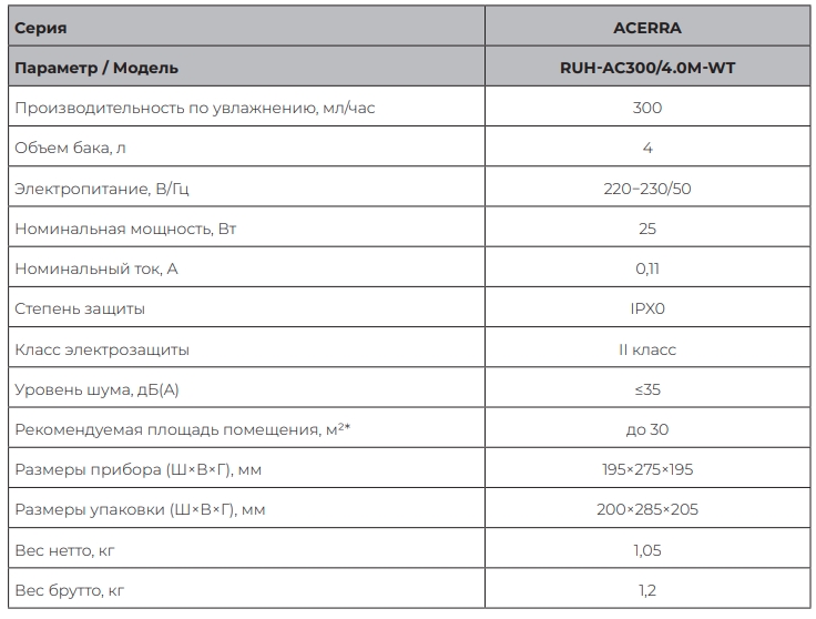 ● Интенсивное увлажнение воздуха до 300 мл в час