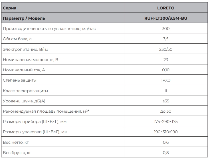 Ультразвуковой увлажнитель воздуха Royal Clima Loreto RUH-LT300/3.5M-BU