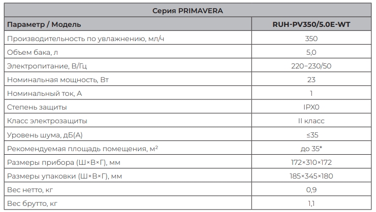 Ультразвуковой увлажнитель воздуха Royal Clima Primavera RUH-PV350/5.0E-WT