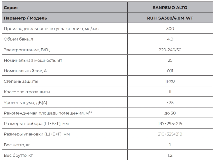 Ультразвуковой увлажнитель воздуха Royal Clima Sanremo Alto RUH-SA300/4.0M-WT