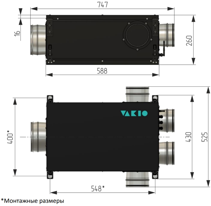 - Управление через мобильное приложение VAKIO Smart Control и настройка Smart режимов от внутреннего датчика влажности